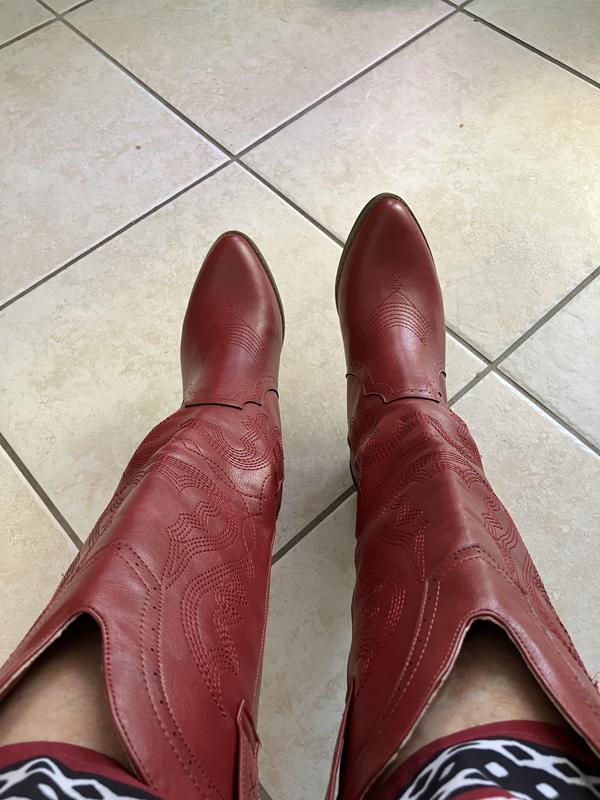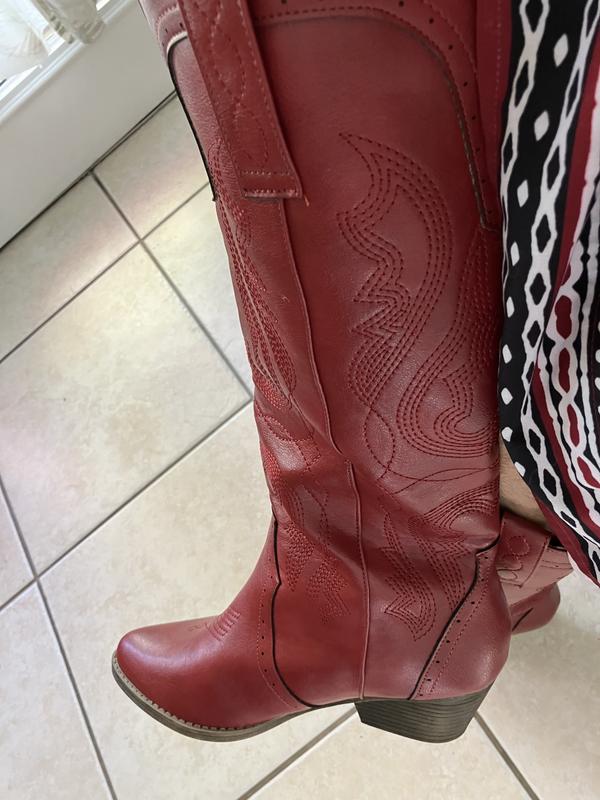 These are really cute boots, but the color was not as bright as I expected. The fit was true to the measurements of the foot. They would be a fun boot, but I was expecting a little better quality for the money. The downside which is not reflected in the rating is the packaging was poor. Macy's shipping department just threw the shoe box in a bag and slapped on the tag. The box was literally ruined with a big hole in the top and one side of the lid had stress wrinkles. I like to keep my shoe wardrobe in the original box. This was not going to happen with this severely damaged box. Shipping needs to improve.