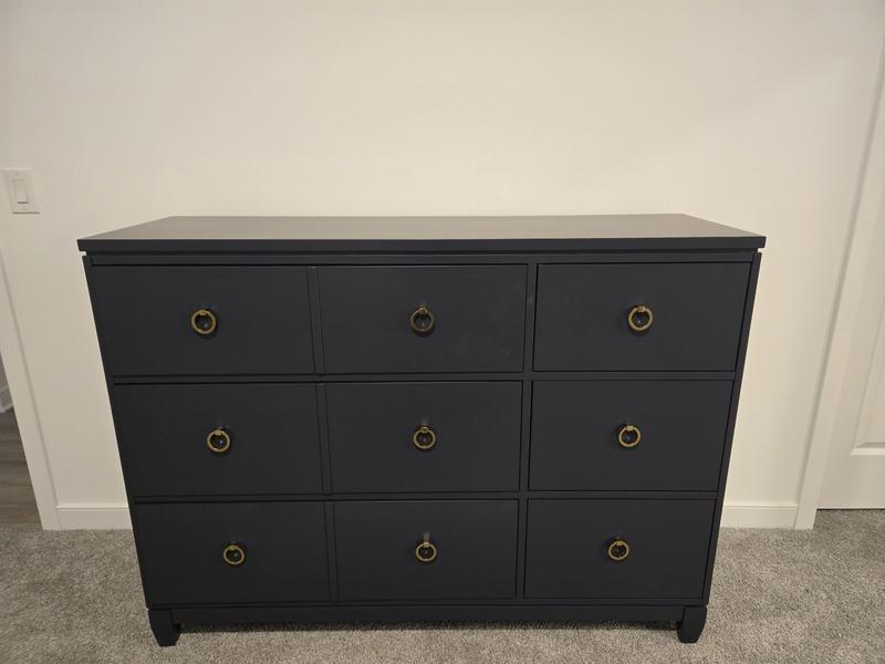 I love this dresser and it is holding its own in with a brand new Bassett bedroom set. The blue color is beautiful, it is heavy, was well packaged and came assembled. The only negative thing I have to offer is the delivery people dropped this giant box off in my house and wouldn't allow me to open it before they left. I didn't expect them to do anything, it was already assembled but imagine the hassle if I opened the giant, multi-layer box to find wrong item or damage. It might be worth giving customers a heads up on that because I was unpleasantly surprised.