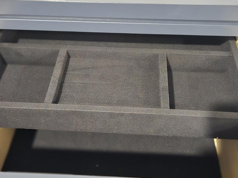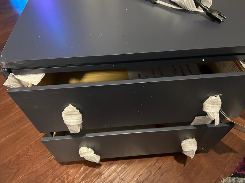 Beautiful piece of well made furniture. The color is navy which is more beautiful in person. The drawers work very well and it’s a great fit with my creamy bedroom set.