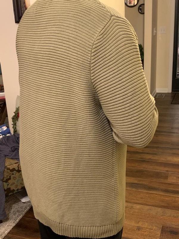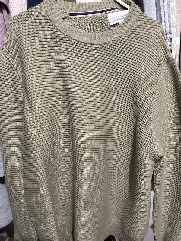 The Sun Stone sweater is soft and olive color is great. It has a great design and fits perfectly. Great choice. Haven’t washed it yet though to check if it shrinks or shortens. Texture and fell is good.