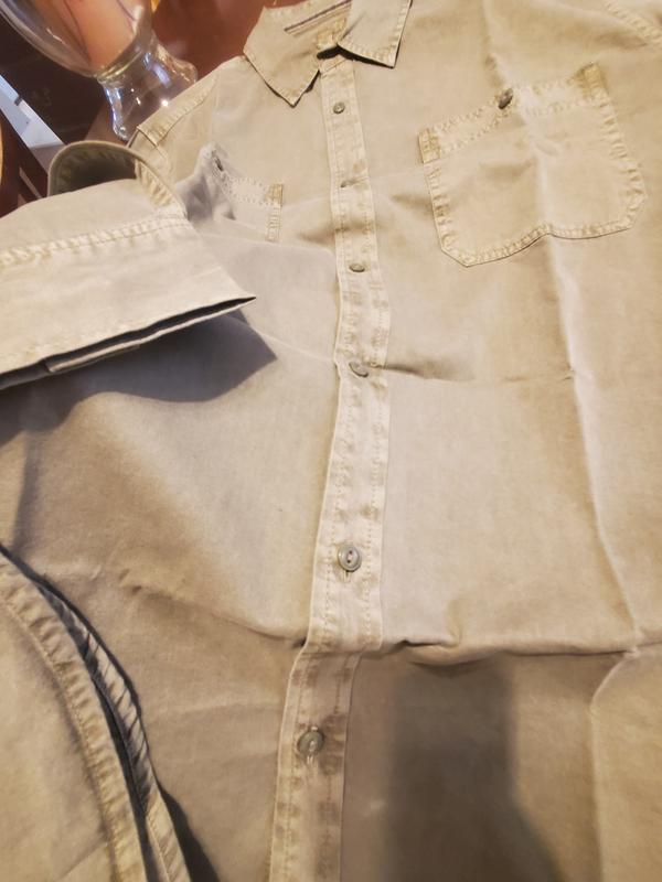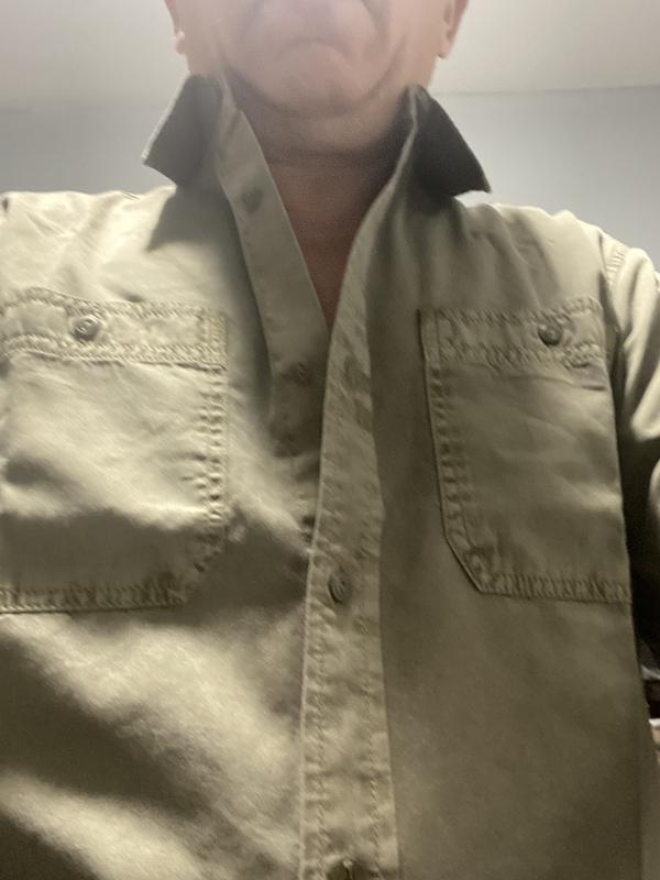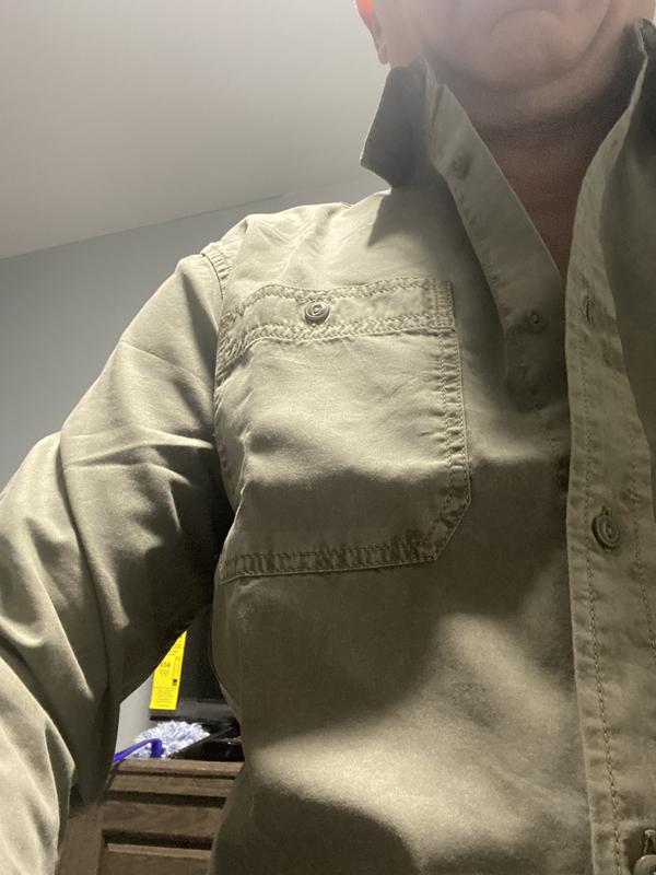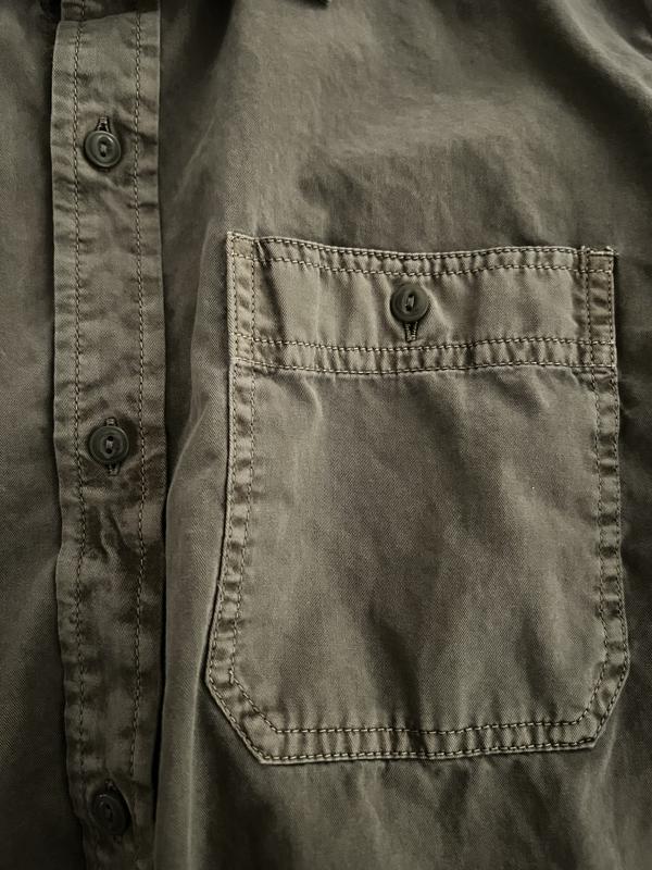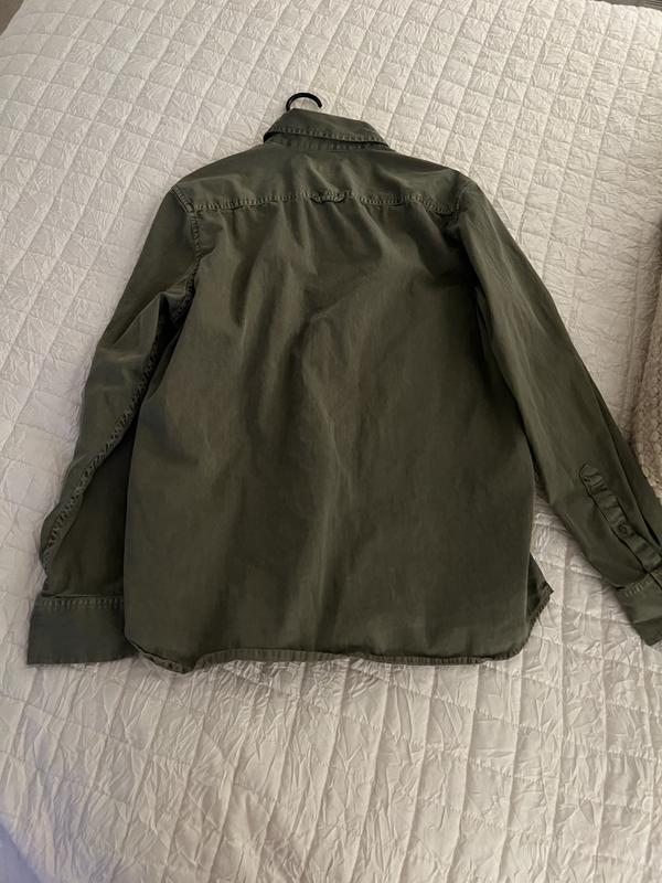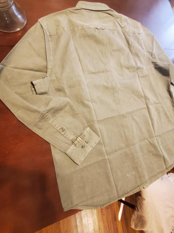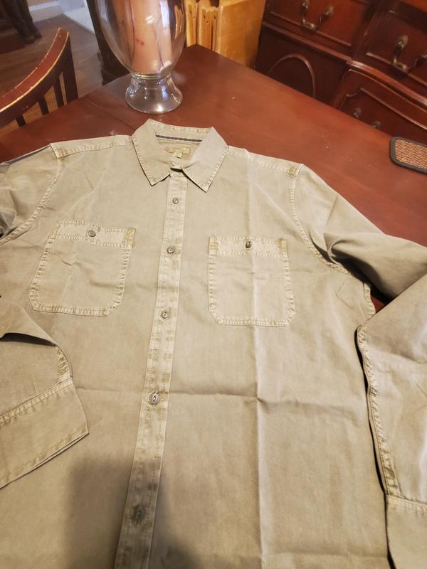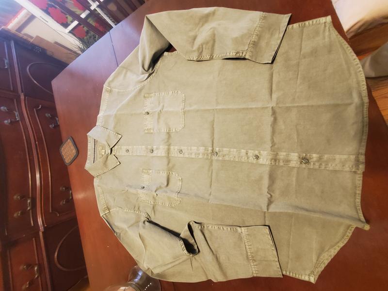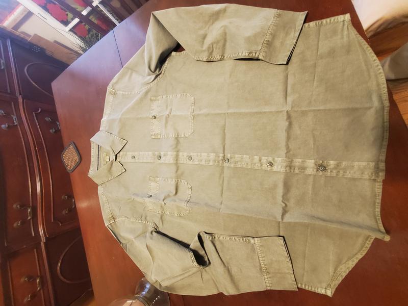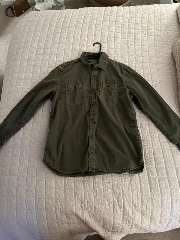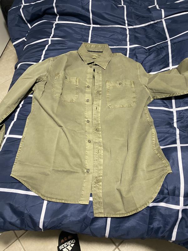 I looked in every store at the mall for an army green shirt and was about to give up when I saw Macy's. This was on a discount rack. I tried it on, liked it and bought it. It's just what I was looking for. The sales person was very nice and made the experience very pleasant.