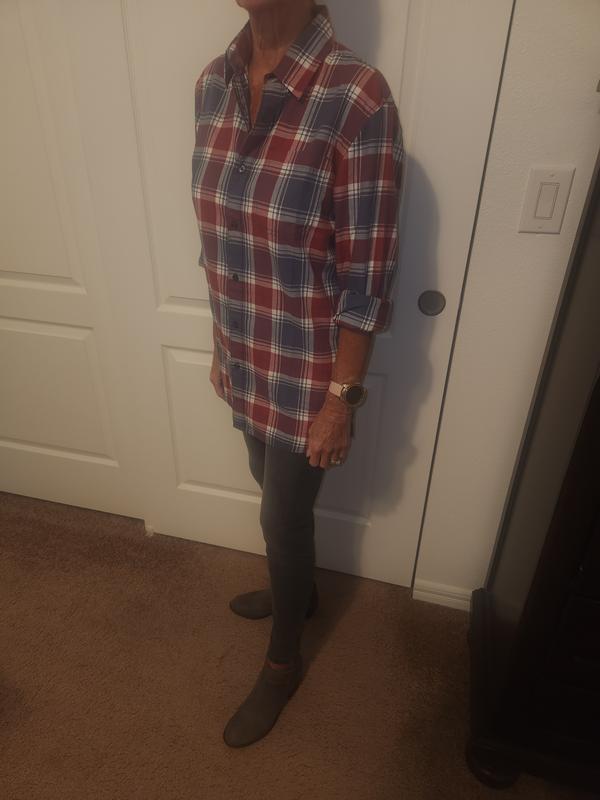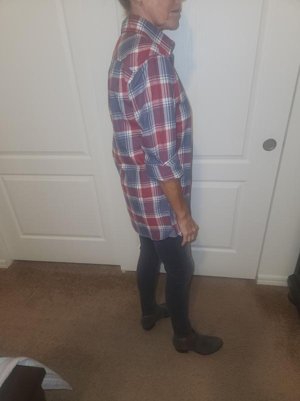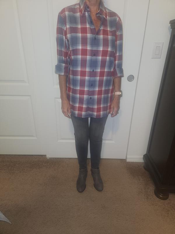 Good quality but dislike sizing. The material and color is nice. But the sizing seems off. The shirt length is way too long and a button up plaid shirt like this shouldn’t be this long. And I don’t want to tuck it in.
