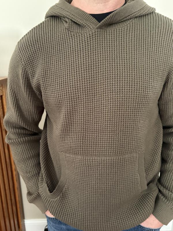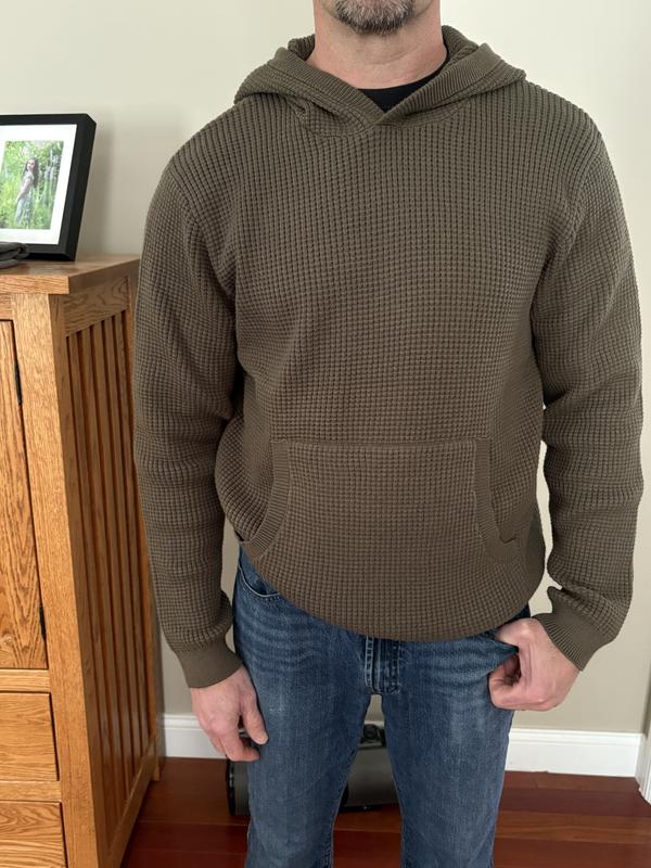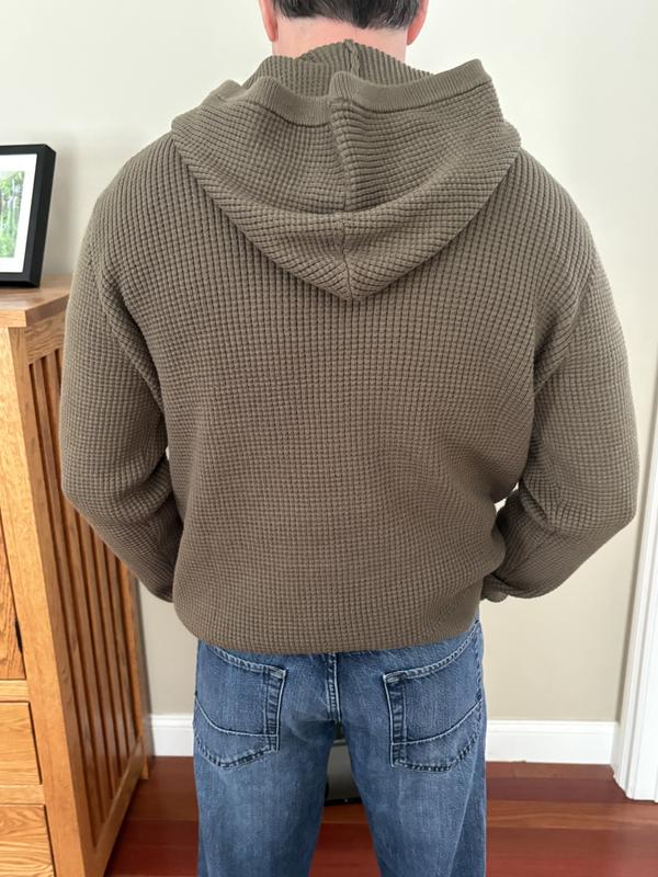 This is a great all-around hoodie! I really like the woven texture — it’s soft but not scratchy. It’s warm but super breathable, so you can wear it almost year-round. The color is a bit darker than it looks in the photos, but still a really nice shade of sage. The only reason I didn’t give it 5 stars is the length. I’m 6'2", and like most things from this brand, it runs just a bit short. The pockets are nice and deep, and the hood fits perfectly. Overall, really solid hoodie — just wish it were an inch or two longer!