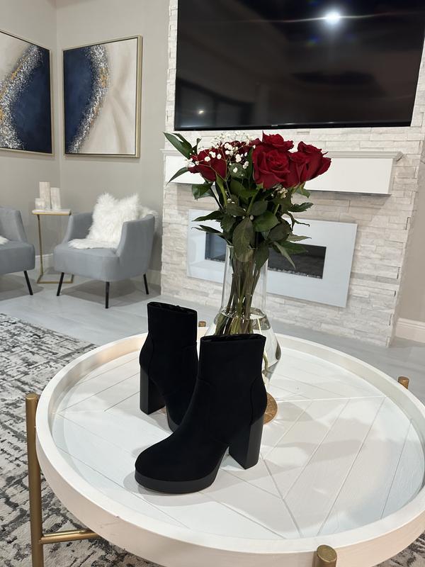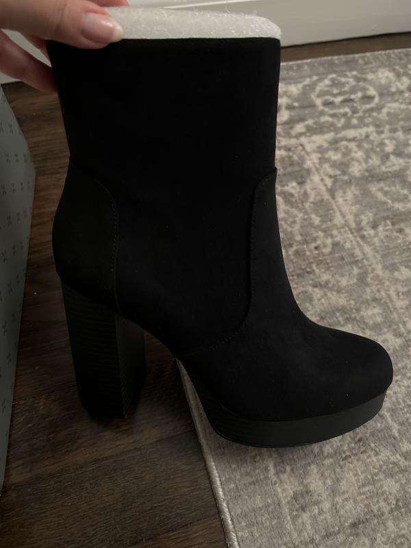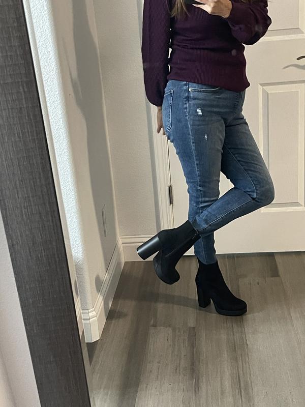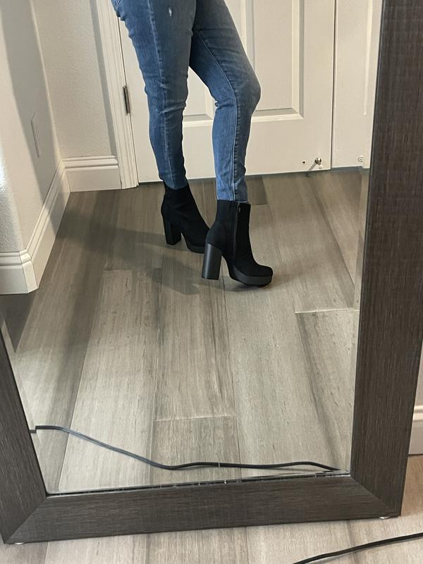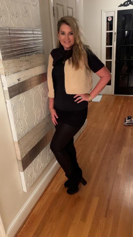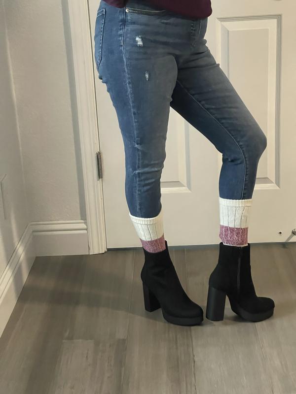 These boots are amazing. Super chunky heel makes them so comfortable. I will be wearing these all season. So cute with leggings. Dress them up or down. I love how tall they make me too! I wore these out to dinner with girls but plan on wearing them to work next week!