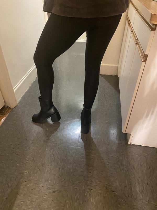 These boots are so stylish! I love them! They go well with many outfits. I love the shape of the boots and the height of the heels. You got to try them out. They are very in style right now. I also found them very comfortable.