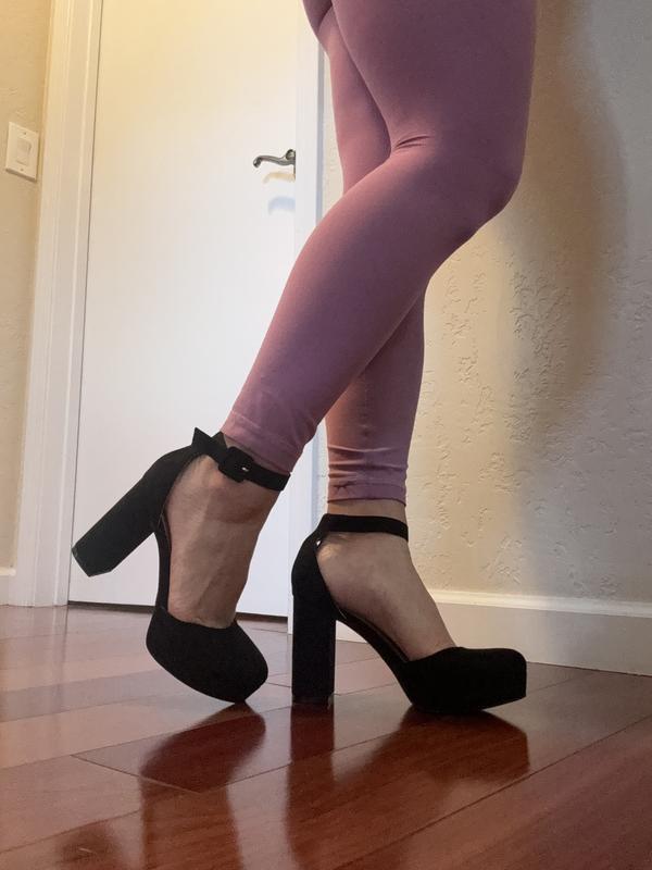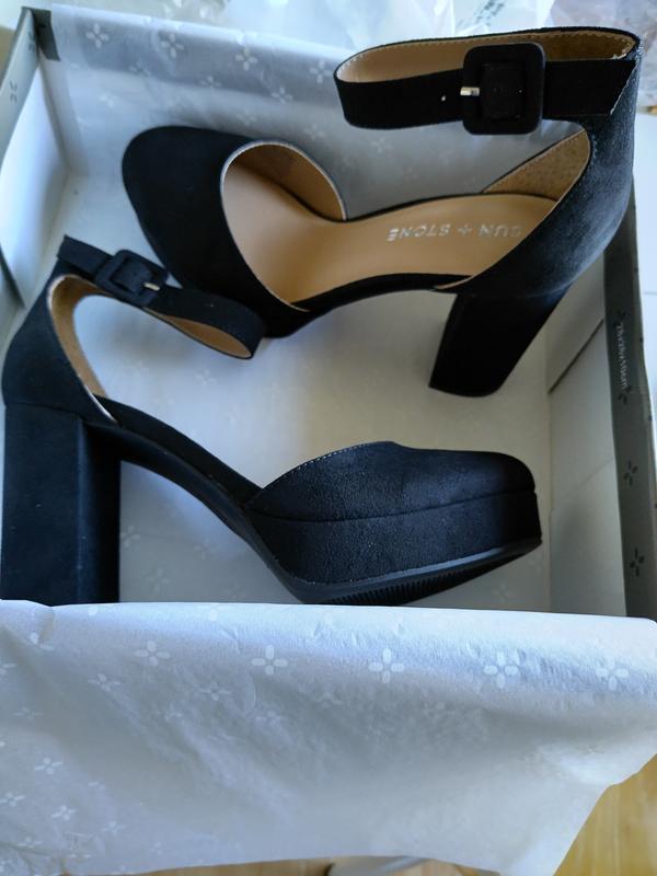 Sun + Stone pairs sturdy ankle straps over trend-right block heels for a must-have boost in the Birdey platform pumps.