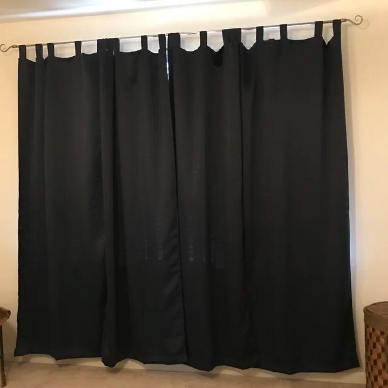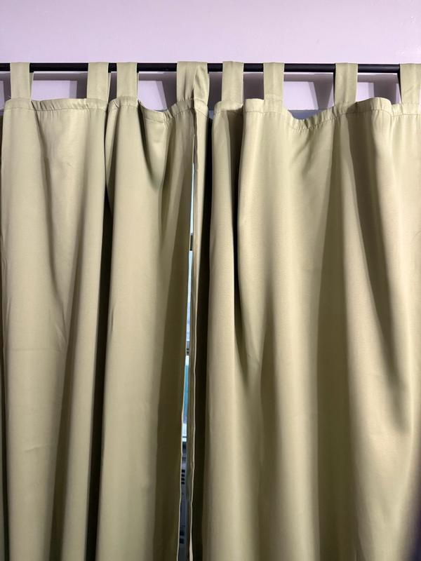 These thermal blackout tab top curtains have been a great addition to the room. They do an excellent job of blocking out unwanted light while also helping to regulate the room temperature, making the space noticeably more comfortable throughout the day. The fabric feels substantial and well crafted, giving them a polished, high-quality appearance without looking heavy or bulky. The tab top design makes installation simple and allows the curtains to hang neatly and slide smoothly along the rod. They also provide a modest level of noise reduction, which adds to the overall comfort. From both a functional and aesthetic standpoint, these curtains deliver exactly what I was looking for and feel like a worthwhile upgrade.