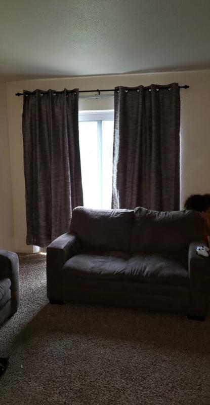 I put up the Rhett 52x84 coal curtains in my living room. They match perfectly with my decor. Love the material very heavy duty and keeps the sun out very well and keeps the room very cool during the summer heat. Will buy again.
