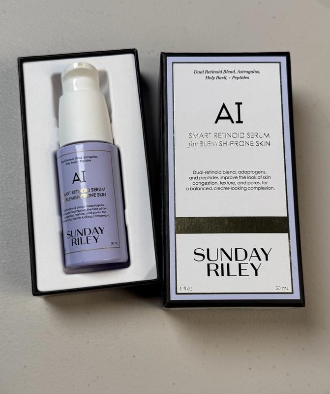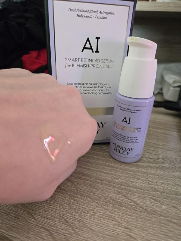 I’ve always had tricky skin combination but on the dry side, super sensitive, and prone to breakouts. Retinoids are a must for me now that I’m in my mid-thirties, but almost every retinoid I’ve tried has either dried me out even more or triggered new blemishes. So I was honestly nervous to try anything new. I’m so glad I gave the Sunday Riley AI Smart Retinoid Seruma chance. This formula uses two advanced retinoids, and it somehow manages to be both powerful and gentle at the same time. I haven’t had a single breakout from it which is rare for my skin. Instead, it’s actually helped calm and prevent them. My pores look clearer, my stubborn post acne marks are fading, and my overall texture looks smoother. On top of that, it’s already softening some early signs of aging without causing the dryness I usually get with retinoids. If you have combination, sensitive, or blemish-prone skin and you want something that targets both breakouts and early aging, this serum is absolutely worth trying. It’s become a must have in my routine.