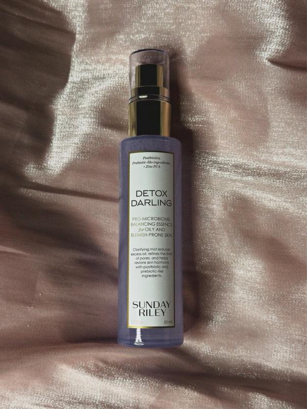 Detox Darling from Sunday Riley has been a great addition to my skincare routine! I am using this as a toner. It works hard to balance my combination skin, which includes my often problematic oily t-zone. This is a clarifying mist/toner that is gentle on my skin. Detox Darling is formulated with postbiotic and prebiotic-like ingredients which is such great skincare technology.