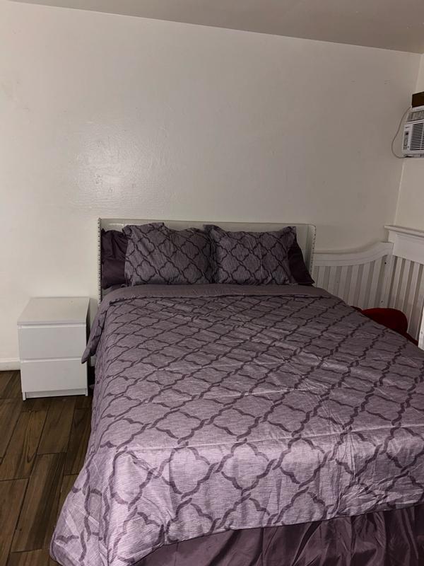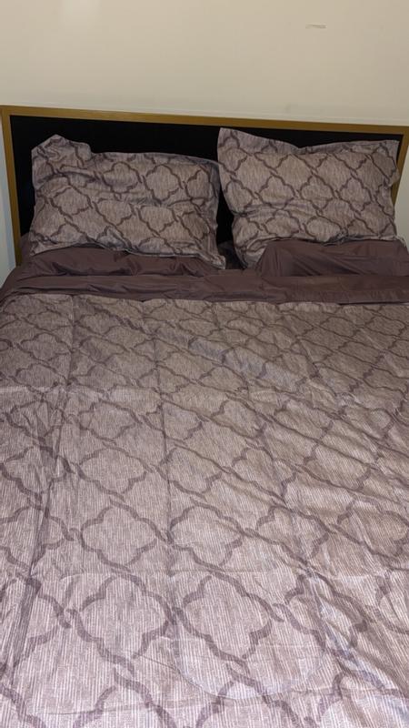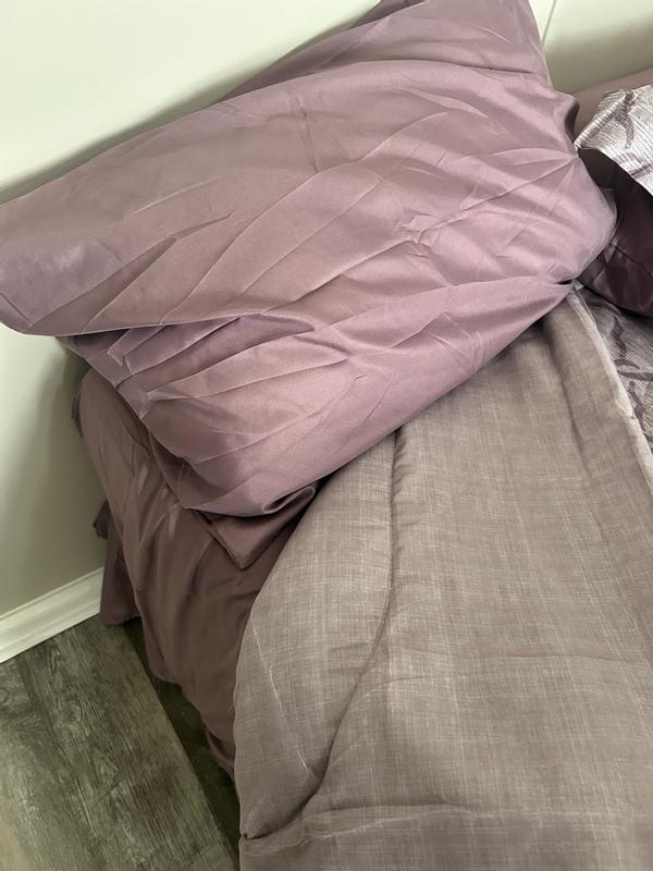 I absolutely love the purple color of the sheets. They are also super soft. I love that the fitted sheet would fit a deep pocket bigger mattress and that the flat sheet is also very big. I am always very discouraged with any queen sized comforter because they do not come big enough so they are always smaller and shorter than the sheets. So it does come untucked, and it does not cover the side of the bed as much as I prefer. The comforter is comfortable, but it is not the warmest and I think it would be best used during fall spring summer but overall I love it.