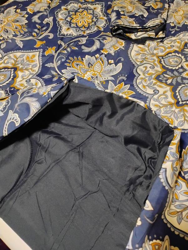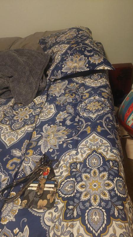 It is a beautiful color and nice comforter when you first use it but after a week the color start to fade by just laying on it. After 1 wash it faded even more. I think it is the Sunham brand. I purchase another comforter from same brand and that one faded too. Don't buy.