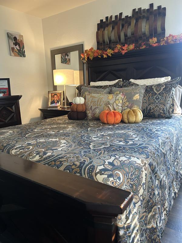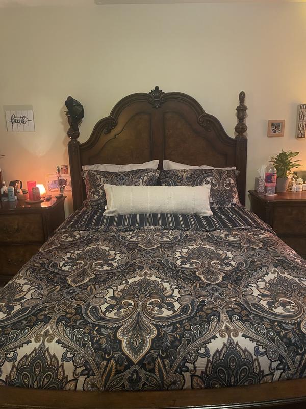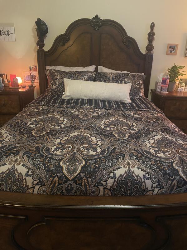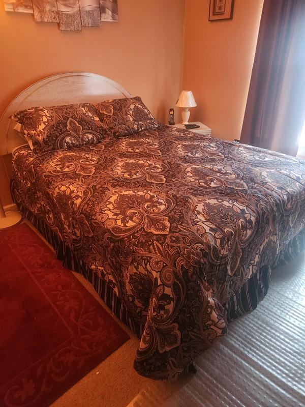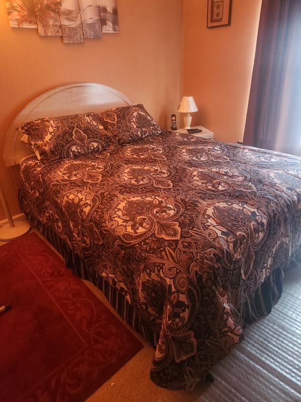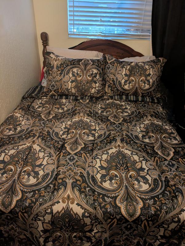 Beautiful comforter set. Looks like the picture. Generous size comforter (queen) Bought for guest bedroom.