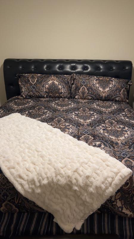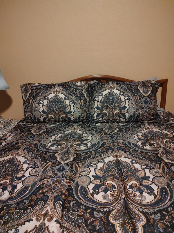 The pattern is beautiful on this comforter. You will need another comforter or blanket underneath if you’re using it during the winter. The material doesn’t provide a lot of warmth.