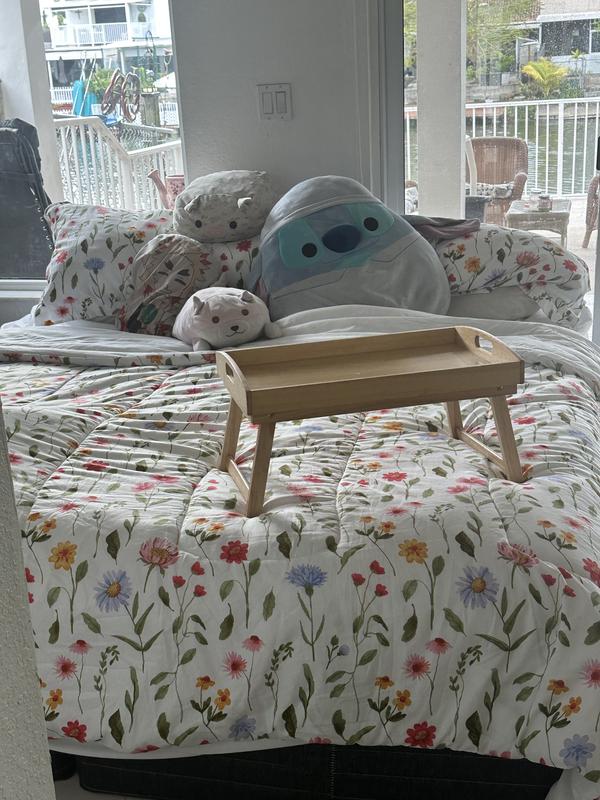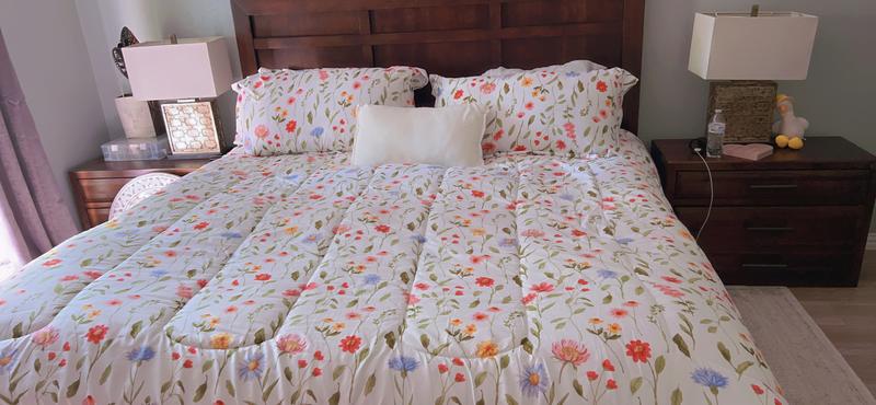 I fell in love with how this beautiful comforter set looked. However, as reviews told me, it is VERY thin material. I haven't washed the set yet, but the shams, though pretty, will need a white cover underneath to not show the lines printed on the pillow itself. This is definitely a set for the warmer months. But I do love the flower pattern. If I had paid full price, I probably would return it.