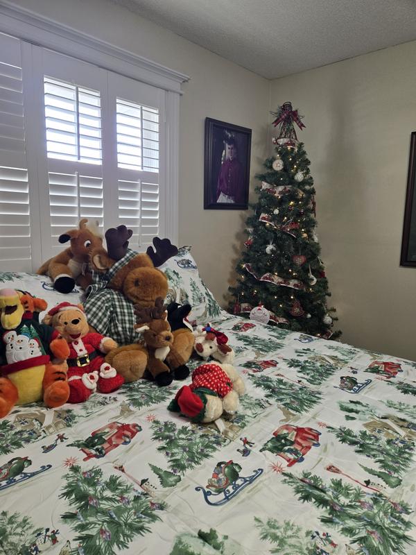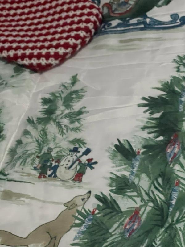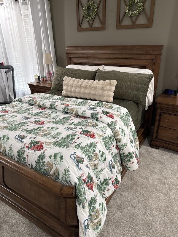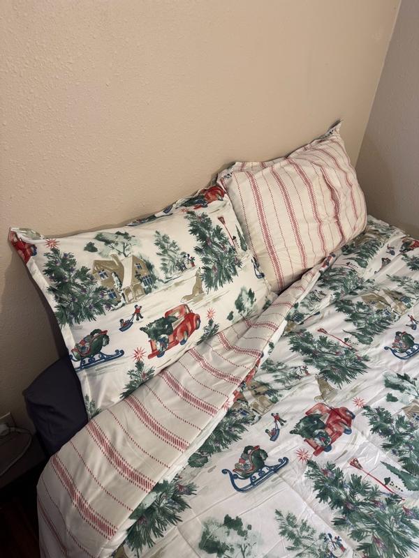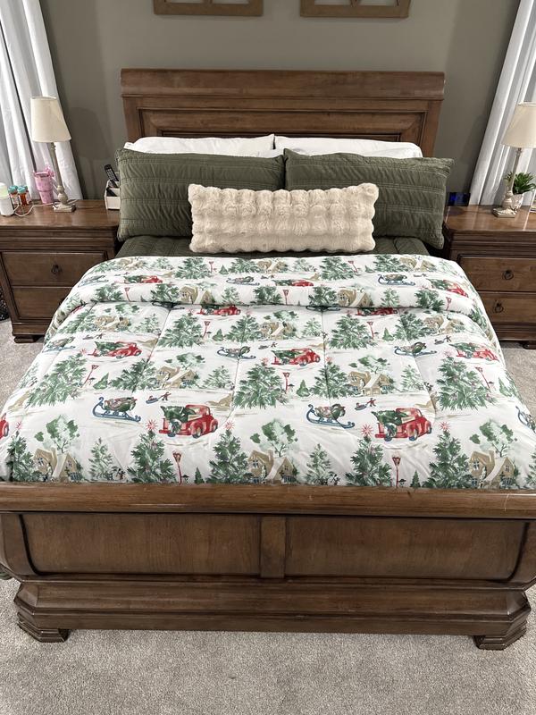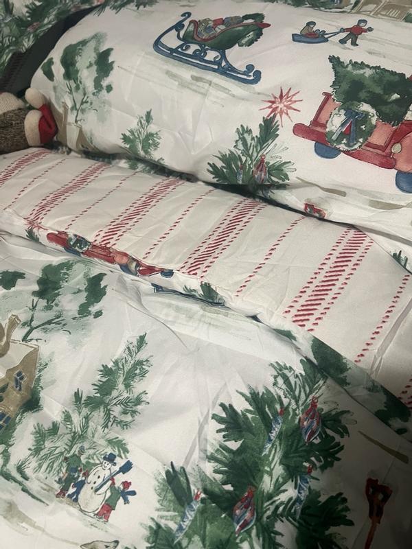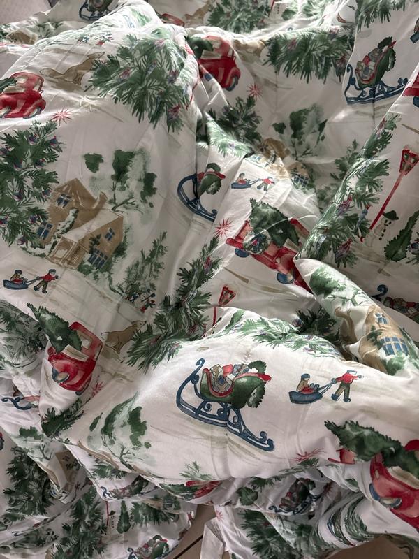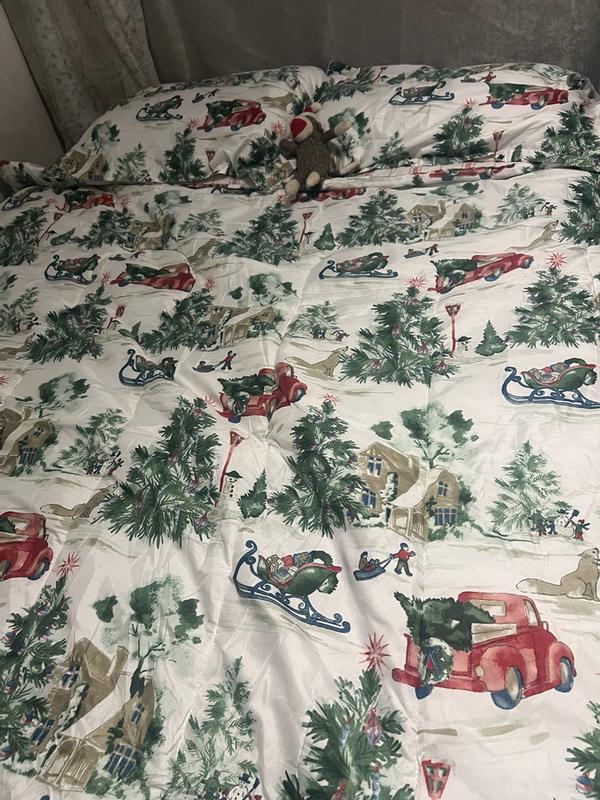 Gorgeous Christmas set perfect for the guest room. It has beautiful Christmas scenes with the iconic red truck, Christmas trees, snowman and Christmas festivities high-quality warm without being super heavy such a beautiful set. I know the guests are gonna love it. I do.