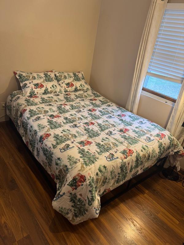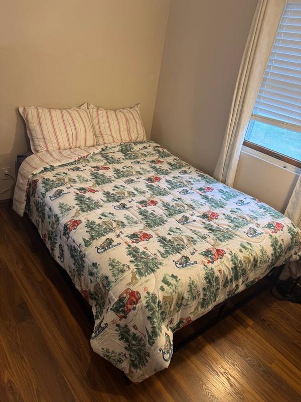 The Christmas comforter and shams are so cute! The material is pretty low quality but if you’re looking for something seasonal on a budget, this is perfect! I washed and dried with no noticeable shrinkage. The comforter isn’t super fluffy but like I said it’s fine for the price and holiday vibe.