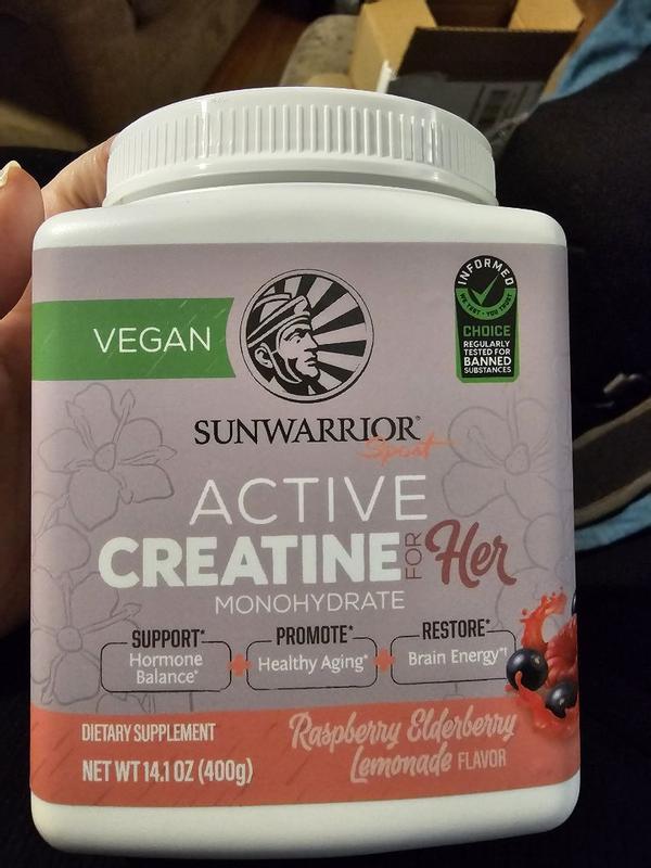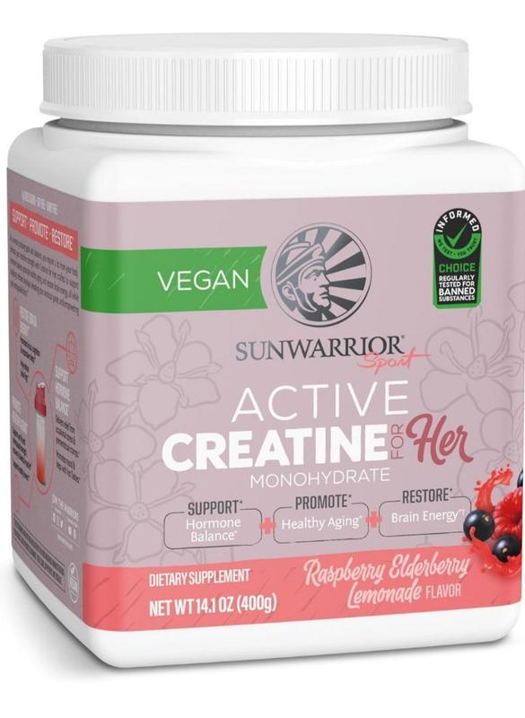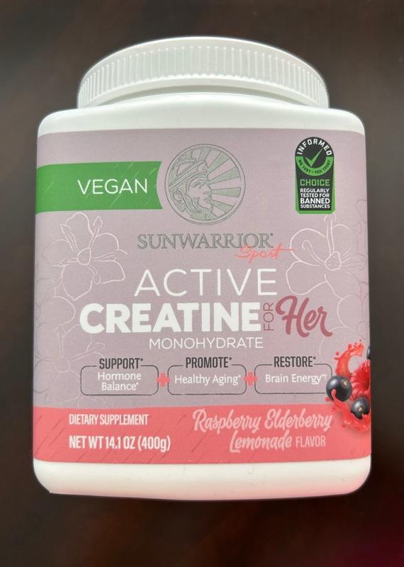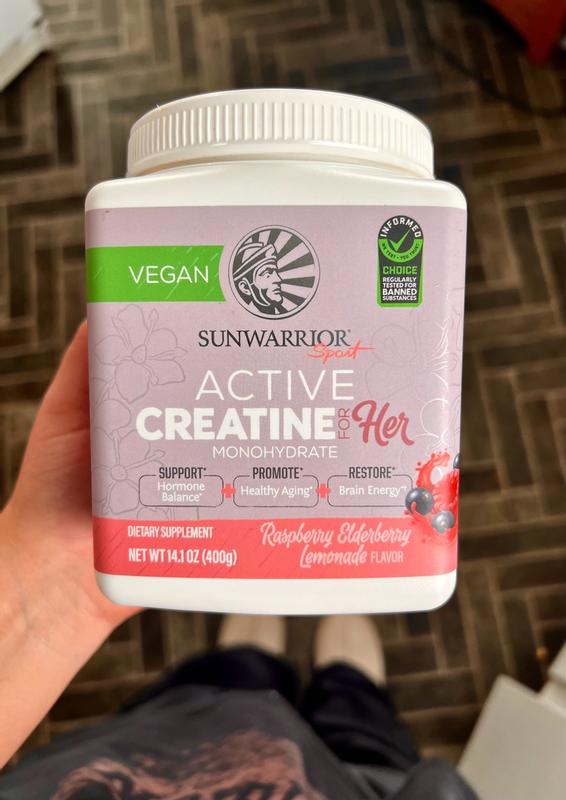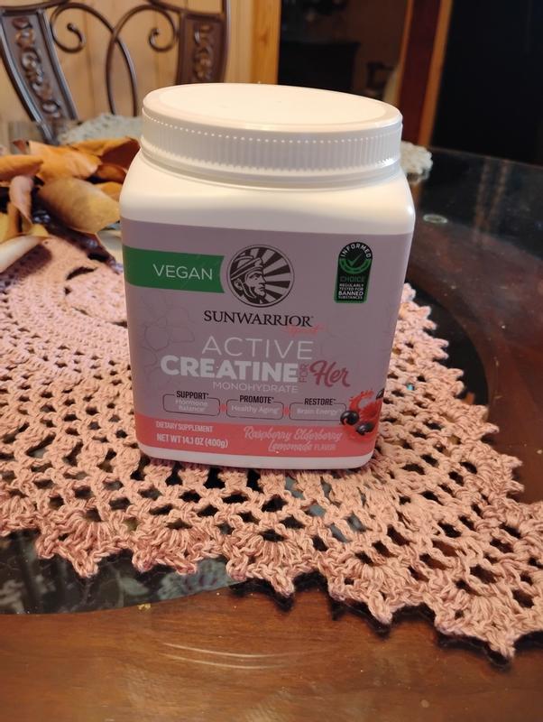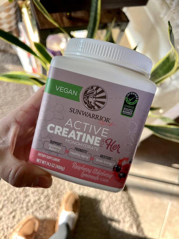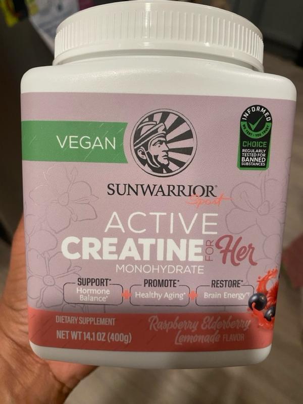 Active Creatine for HER, Monohydrate Powder Micronized PreWorkout Recovery Supplement for Women, Sunwarrior, Raspberry Lemonade Flavor, 50 Servings