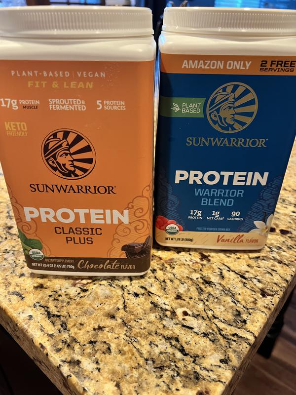 Classic Plus Protein Powder, Plant-Based Protein, Sunwarrior, Chocolate Flavor, 750gm (30 Servings)