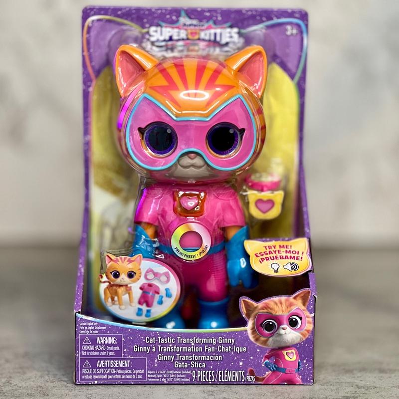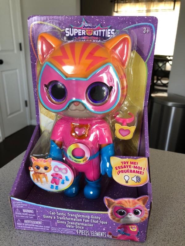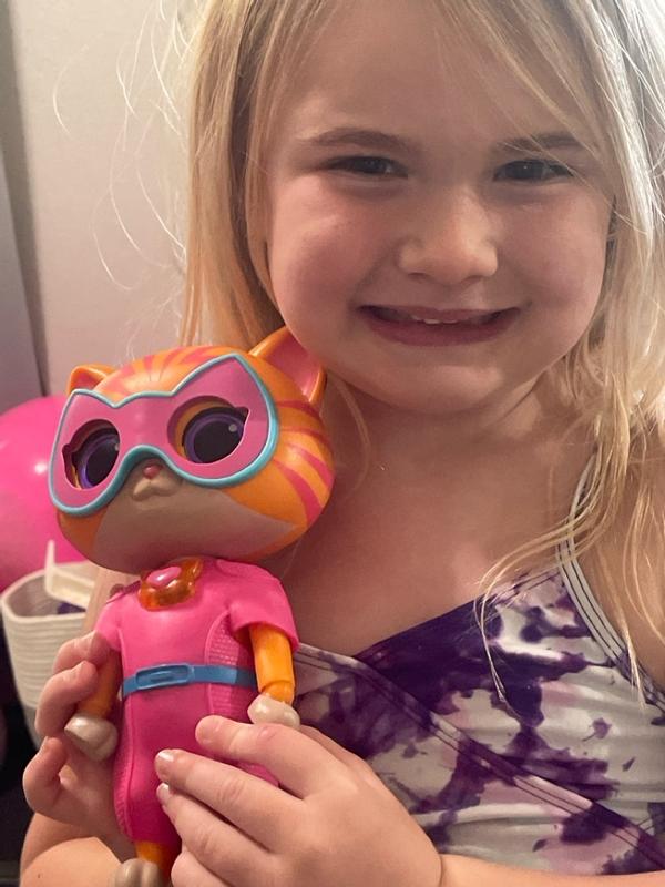 My daughter watches Super Kitties all the time and was so excited to received this. The cat comes with removable super hero clothing that can be taken off to turn her into a normal looking cat. She also says different sayings when you press on her belly. This is the perfect gift for a toddler and will keep them busy for hours.