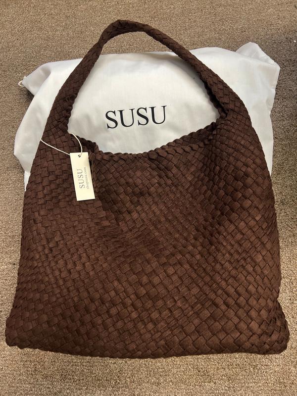 Brown and Espresso Suede Woven Hobo Bag Large Slouchy Shoulder Tote Handbag for Women Soft Braided Texture Work Purse