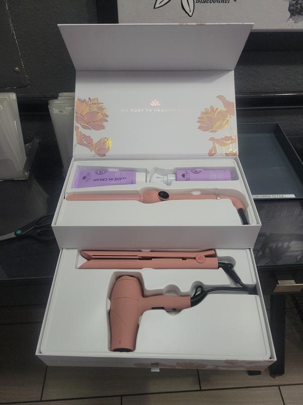 Love this set, I can set it on 350 degrees and only takes minutes to do my hair . Just live Sutra tools!! First time buying them, Sutra tools are used at the salon I go to! ❤️ Also the styling products are excellent!! I just love them all!!