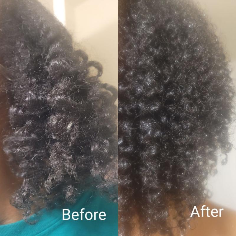 The best way for me to use this product was as a pre shampoo. The before picture is once I took my hair out of the 4 braids I had it in, and the after picture was once I rinsed my hair of the oil. I applied it to damp hair as I don't like applying just oil to dry hair because it can cause more breakage. It's not a heavy oil as it was easy to rinse out of my hair. I let it sit in my hair longer than 15 minutes, and it hydrated my hair and was a good base before going in with shampoo.