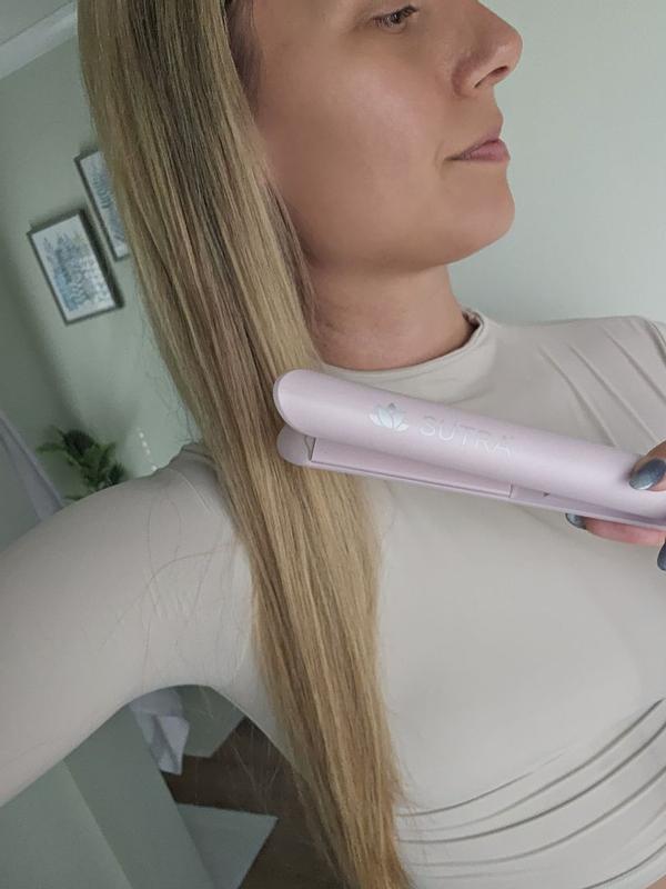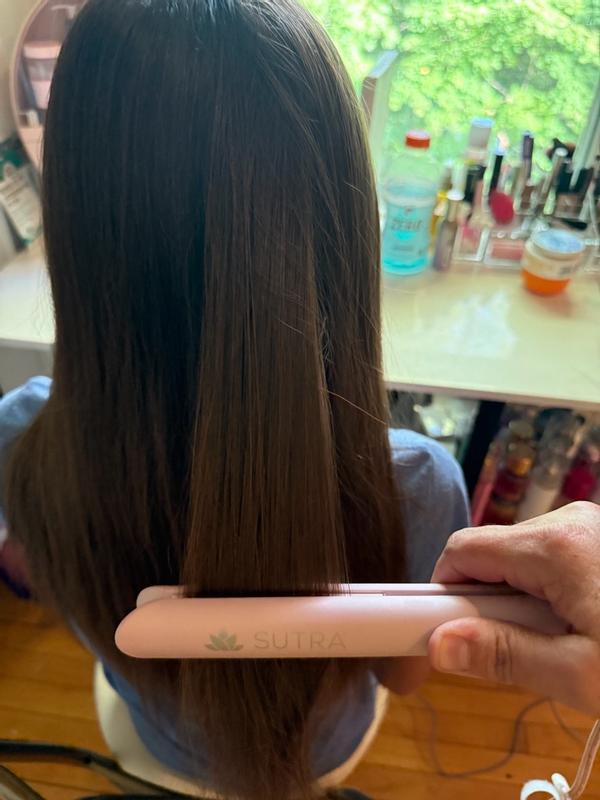 This Sutra flat iron is an excellent size, and I absolutely love the adorable car in case which protects it and keeps the heat off of my furniture. The flat iron gets very hot and it does an excellent job smoothing my hair. It fits well into the carrying case which is very, very cute and practical. It keeps my hair from getting frizzy as it’s got a smooth ceramic which glides easily over my hair. Overall, this is a great little compact size flat iron that I would highly recommend.