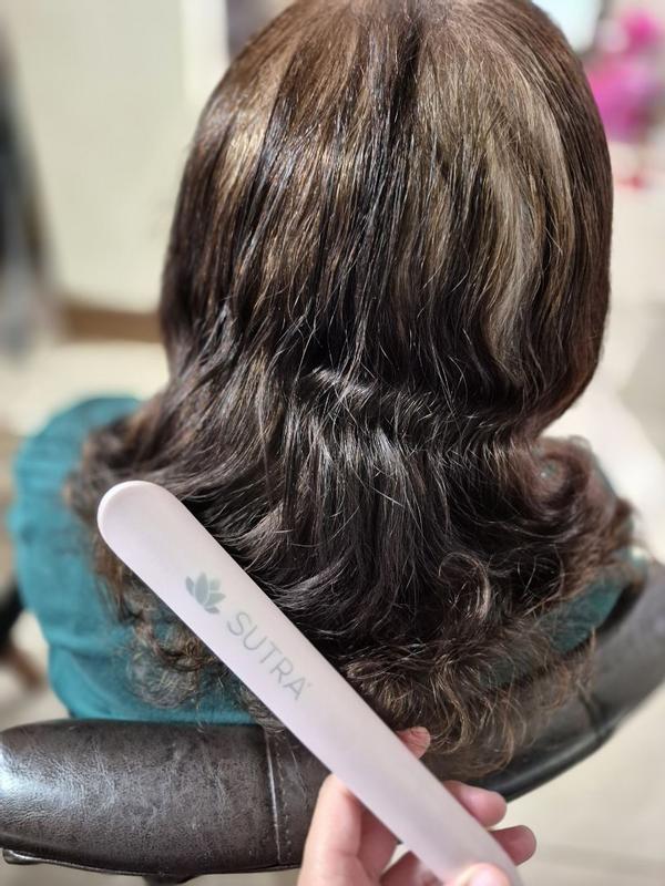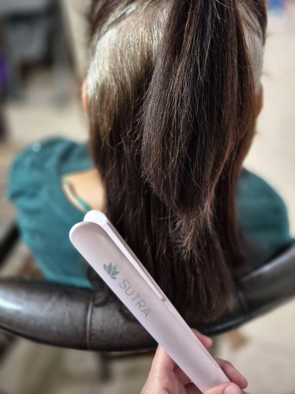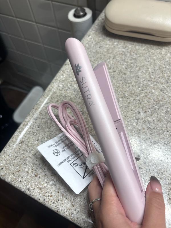 This Sutra flat iron is an excellent size, and I absolutely love the adorable car in case which protects it and keeps the heat off of my furniture. The flat iron gets very hot and it does an excellent job smoothing my hair. It fits well into the carrying case which is very, very cute and practical. It keeps my hair from getting frizzy as it’s got a smooth ceramic which glides easily over my hair. Overall, this is a great little compact size flat iron that I would highly recommend.