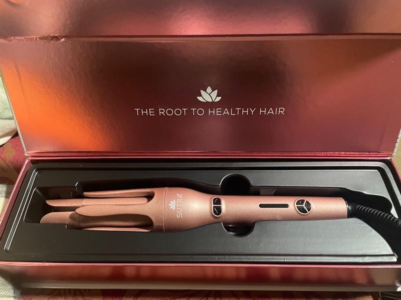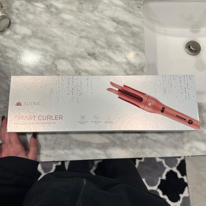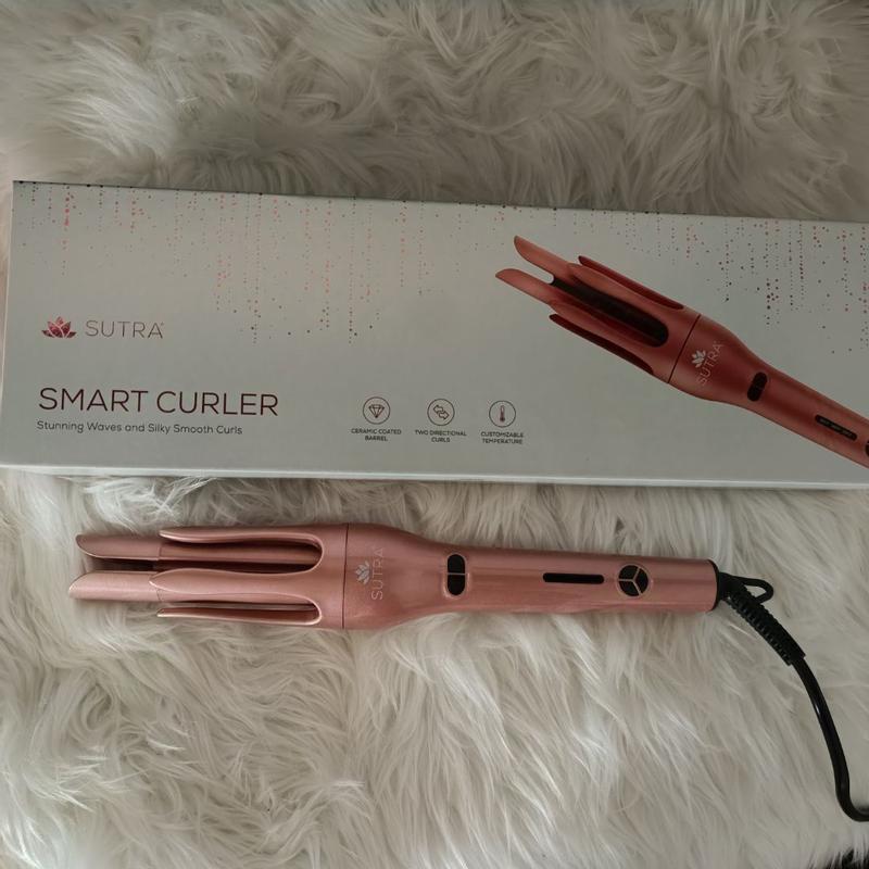 I got the Sutra smart curler in the mail to try out. This thing does all of the work for you. It's so easy to use. Wrap your hair inside, and it automatically curls it in either direction that you choose to go. It has an anti tangle technology, 60-minute sit of, 360° swivel cord, customizable temperature setting, beeps when you need to stop curling, and it's safe for all hair types. My hair is straight, thick, and frizzy. I do prep my hair before I curl. It's amazing and makes curling my hair so much easier! It takes me 12 minutes to do my entire head of hair. My old curler took me 30 minutes or longer. I'm so happy with this product!