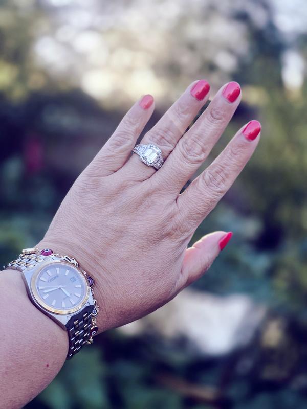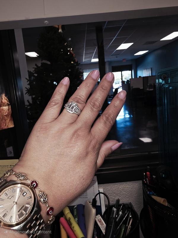 Happy with how beautiful this ring is ! I am pleased with the quality and size