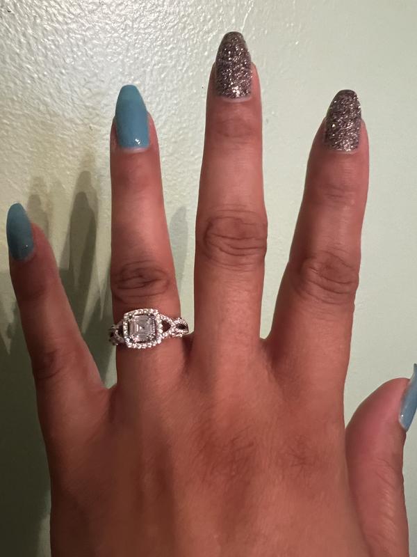 Suzy Levian Sterling Silver Asscher Cut Cubic Zirconia Center Stone Ring