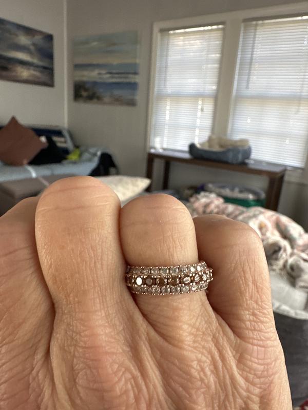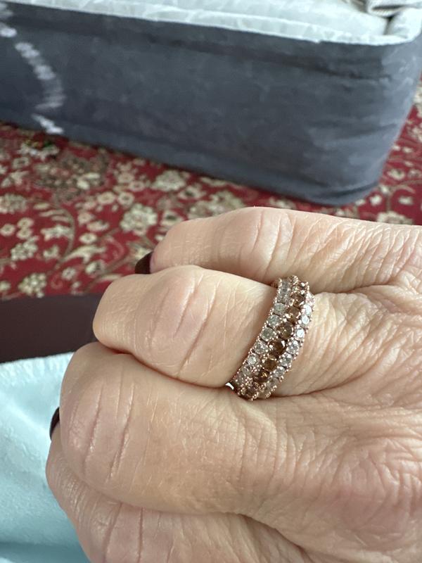 Suzy Levian Sterling Silver Cubic Zirconia 3 Row Brown Eternity Band