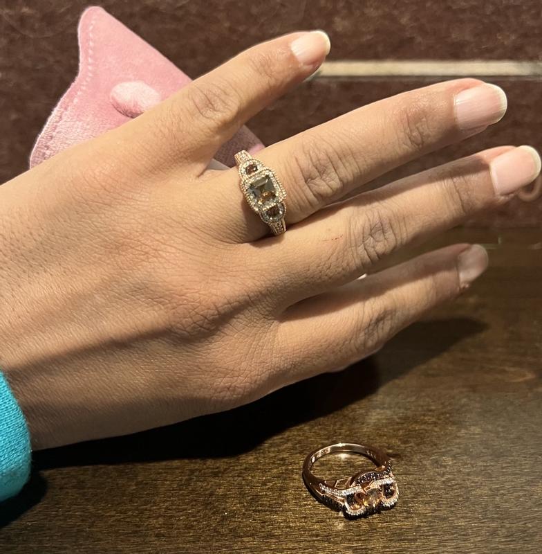 I’m very pleasantly surprised at how gorgeous the ring is! It is very well made and feels very luxury and the stone is just a beautiful color. It’s beautiful and neutral in that you can wear it with a variety of colors in clothes. It’s perfect for a gift where you’re looking for something stately almost, with a class and grace.