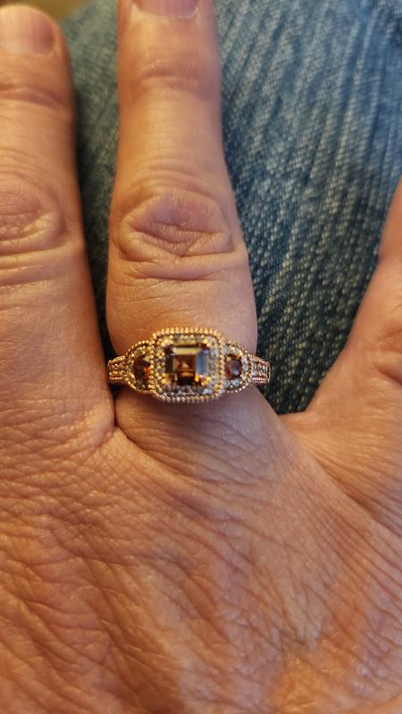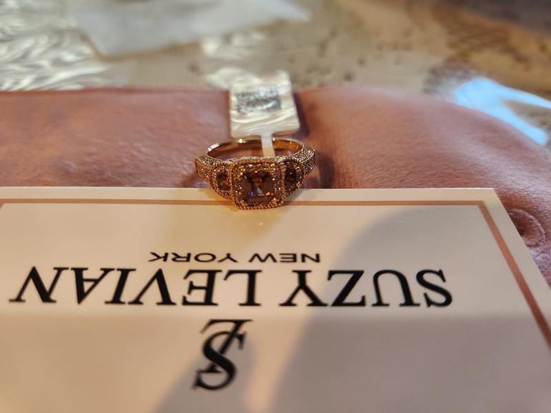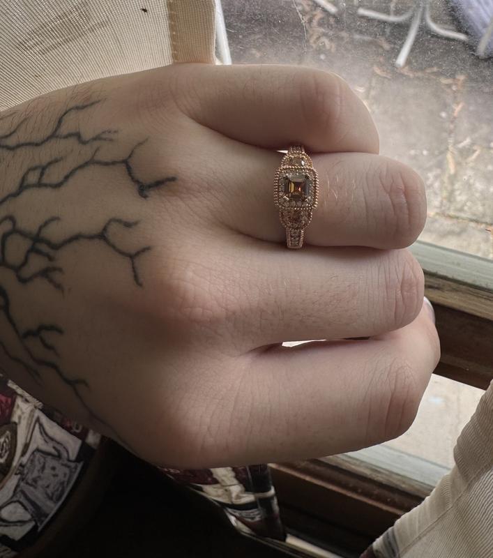 Suzy Levian Sterling Silver Cubic Zirconia Asscher Cut Brown Center Stone Ring