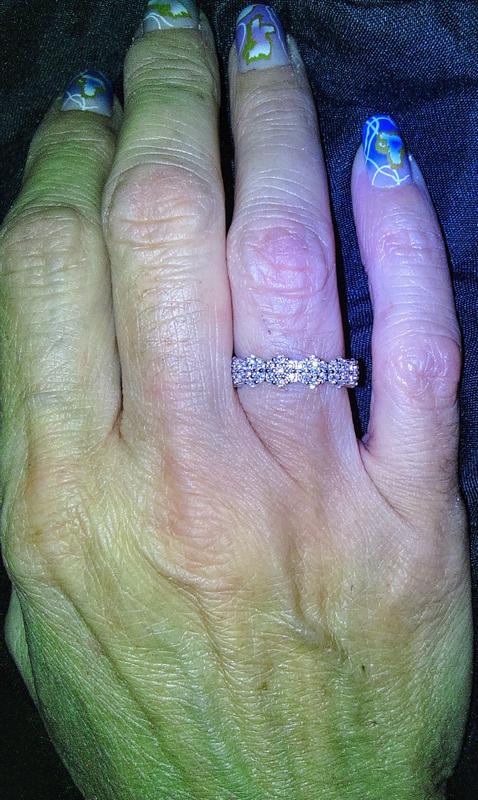 I ordered this ring because I thought it was beautiful and so sparkly and you will see from my attached picture. It goes perfectly with a ring that I’ve been wearing for years absolutely gorgeous.