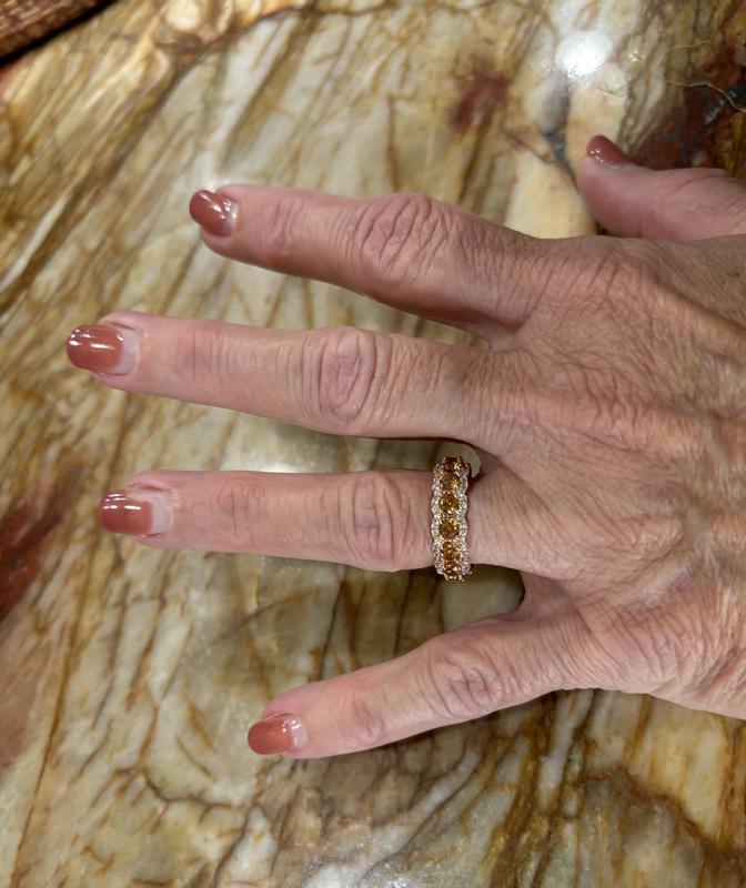 beautiful ring but I ordered a size 8 and it did not fit. Took it back to my local Macy's. They measured th ring and found that it is not an 8 but a 7 1/2. Only size 8 is available for purchase or I would have ordered a size larger.