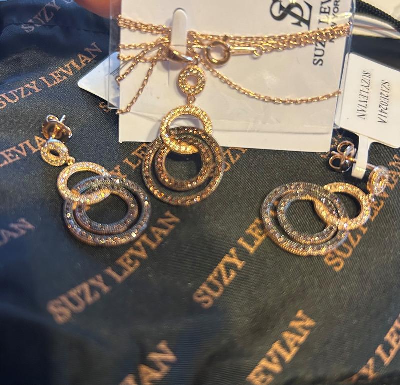 I very rarely leave a review; however, these earrings are beautiful! I purchased them online and was concerned they would be too large. I was so happy to find when they arrived they were the perfect size, incredibly flattering and perfect for a dressy occasion or for a fall look with jeans and boots. There is a matching pendant necklace that I would love to add next to make this a lovely set! If you are looking for a beautiful, flattering, pair of earrings, I highly recommend these!