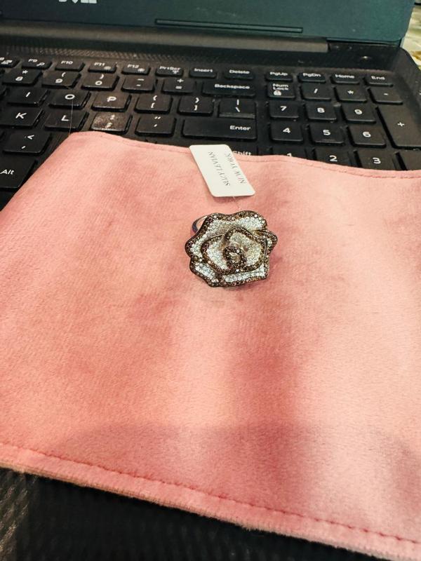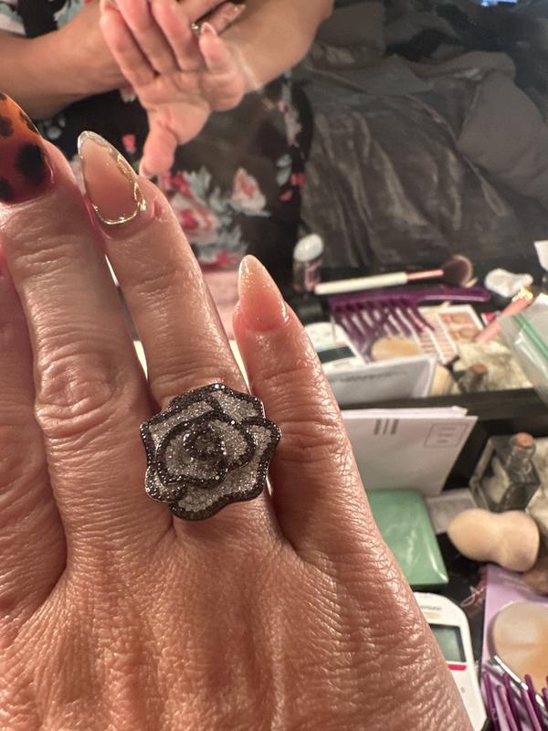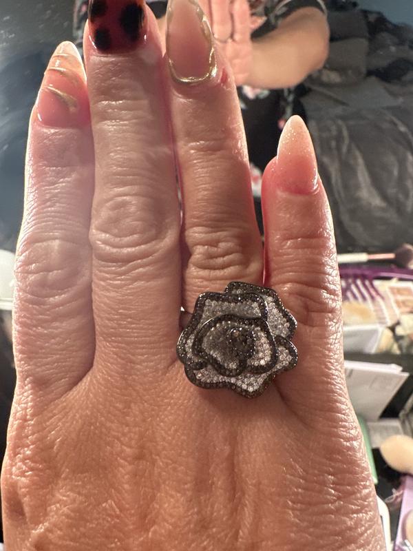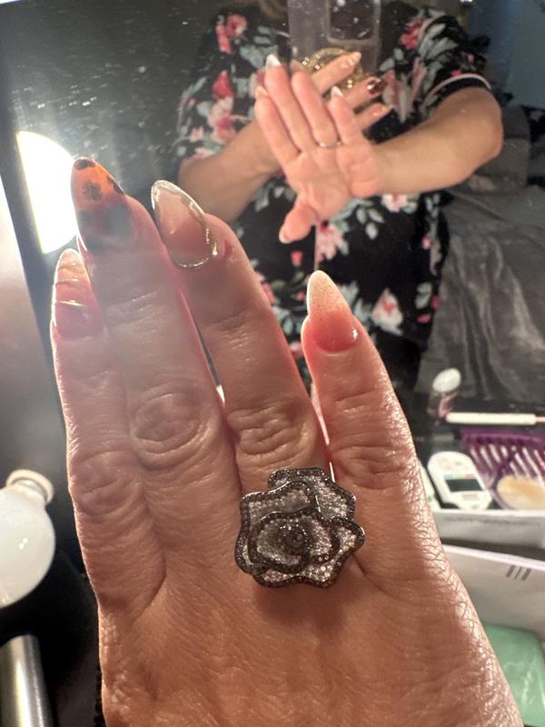 The ring is so stunning. The design of the flower is big n shiny. The stones are beautiful. This Suzy Levian ring is gorgeous. Also its comfortable and durable to wear. Definitely would buy another one.