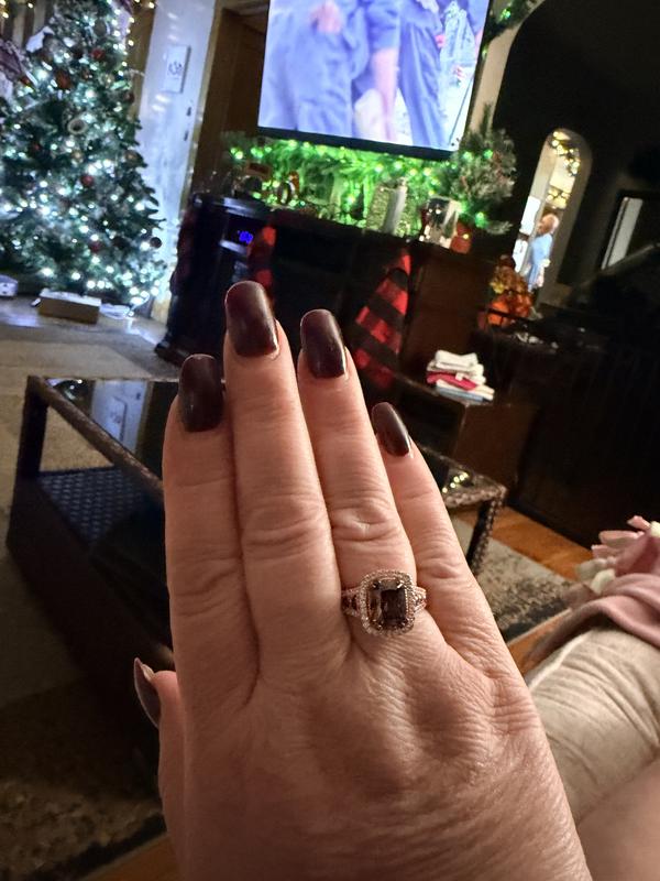 I ordered this ring as I was looking for a smoky quartz ring for quite some time but nothing was catching my eyes. But as soon as I received this ring I knew my quest is finished. Its even more beautiful in person and no one can ever tell that its not a diamond ring, it looks even prettier than all of my diamond rings, the cubic zorconna it has give an amazing sparkle and shine to it.I get so many compliments on it all the time.Don’t overthink just buy it, you wont regret.