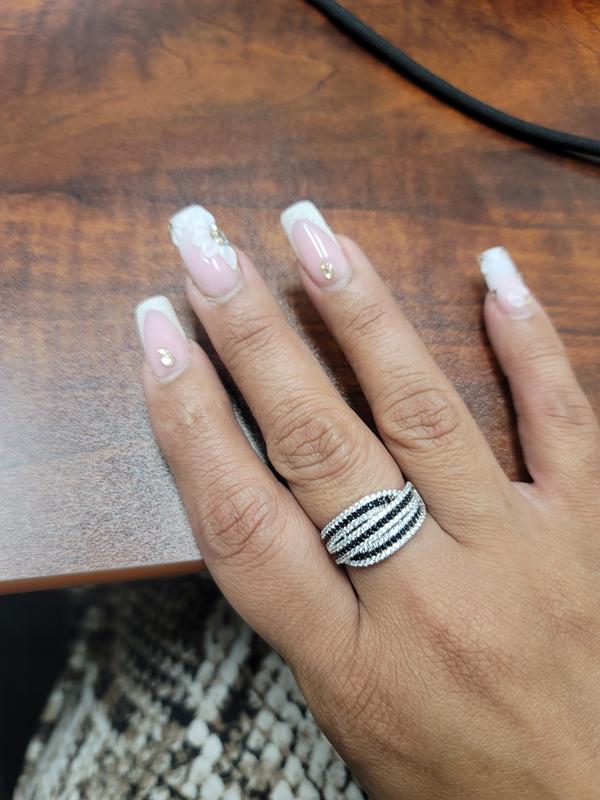 I order a size 7 Suzy, Levian Sterling, silver cubic, zirconia, black, and white striped ring and I’m very happy with my purchase. They look even better in person than it is on a picture. I will buy again and I absolutely recommended.
