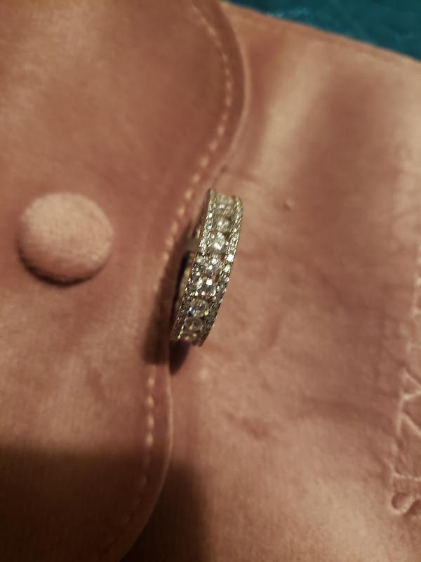 Ring is absolutely gorgeous. Beautiful sparkle and shine. Heavier than I imagined. Great quality.