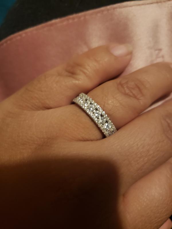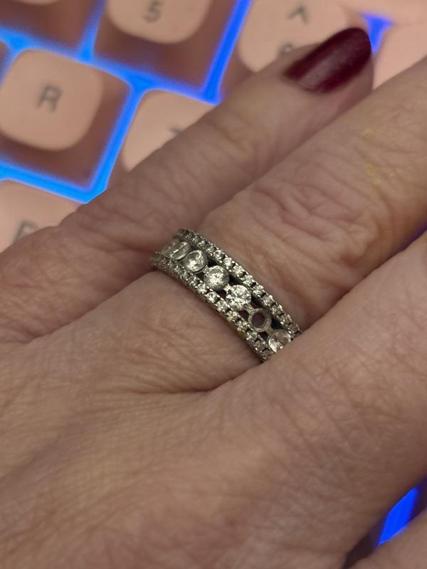 Suzy Levian Sterling Silver Cubic Zirconia White Three Row Modern Eternity Band