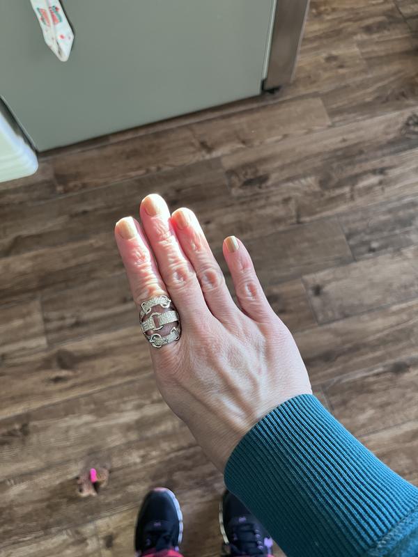 I have been looking at this ring for awhile - and finally purchased! it is really substantial - knuckle to knuckle which I am always looking for! Plus I have to comment - offering half sizes is wonderful especially on this statement ring. Beautiful!
