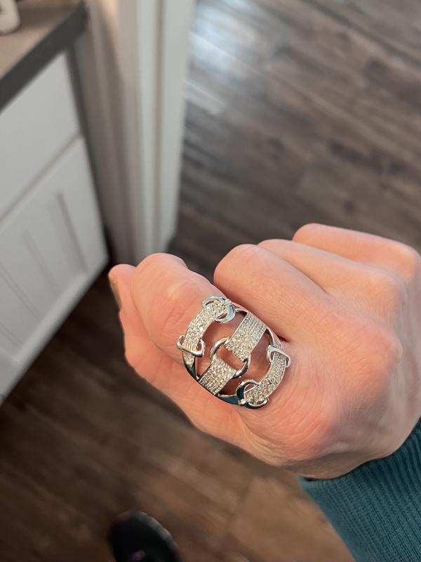 I purchased the Suzy Levian Sterling Silver Cubic Zirconia Triple Buckle Ring for my daughters 19th birthday. The ring exceeded my expectationsm the quality and appearance of the ring is increadible, and it sparkles even more in person. I would highly recommend this ring.