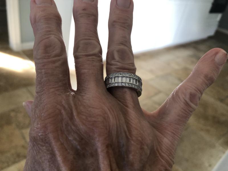 This is a "ONE OF A KIND" ring. I've been searching for an eternity ring for quite sometime... when I came across this beauty, I just could not resist. All I can say is, WOW! I get constant compliments and I can't be happier with my purchase. Thank you for creating such a beautiful and elegant ring.