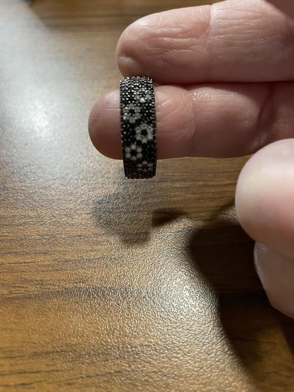 I really love this ring. The little flower details with the black stones make it look so pretty and different. It’s simple but still stands out.