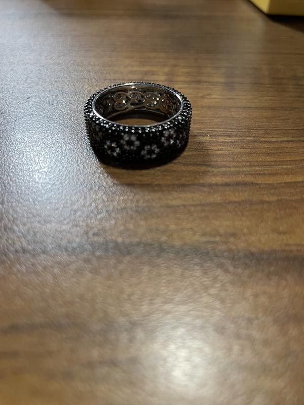 Suzy Levian Sterling Silver Cubic Zirconia White & Black Pave Flower Eternity Band Ring