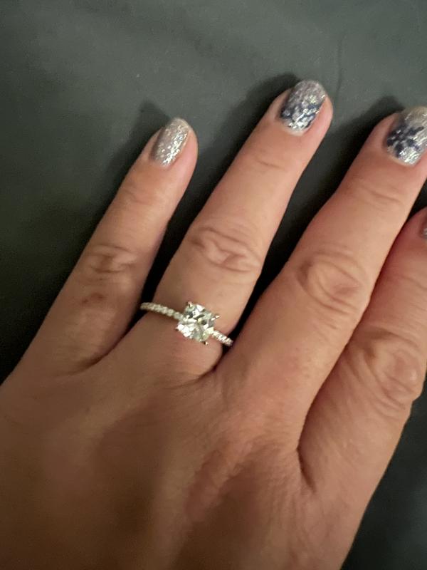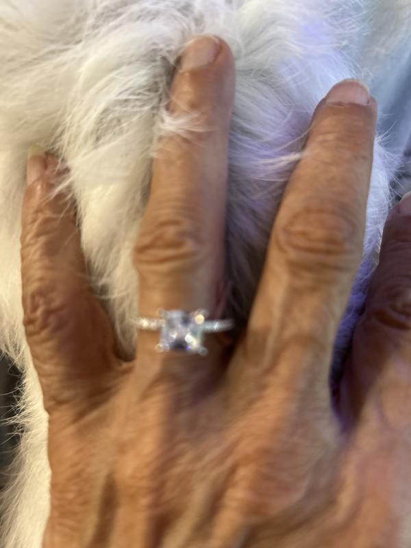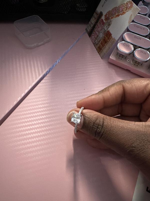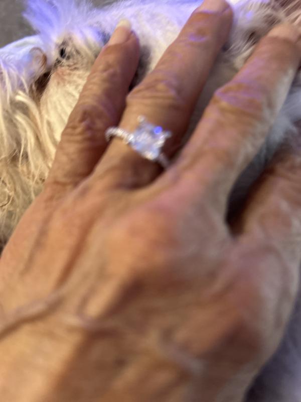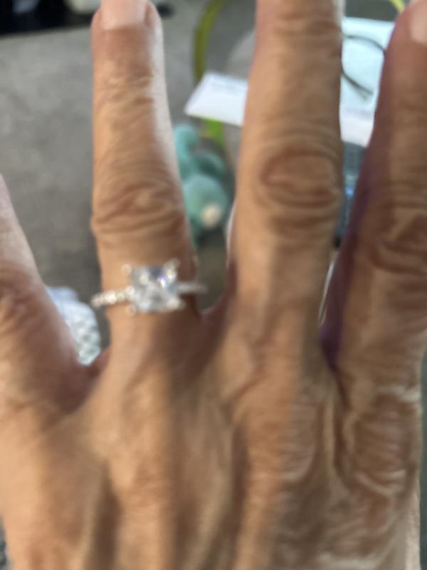 I am absolutely thrilled with this ring! The sparkle of the cushion-cut cubic zirconia is breathtaking—it catches the light beautifully and looks just like a genuine diamond. The sterling silver band feels solid and durable, yet still elegant and comfortable to wear all day. The intricate details and craftsmanship make it look far more expensive than it actually is. I constantly receive compliments whenever I wear it, and no one can tell it isn’t a real diamond. It’s the perfect choice for anyone wanting a timeless and sophisticated piece without breaking the bank. Whether as a bridal ring, an engagement piece, or simply a gorgeous accessory, this Suzy Levian ring is flawless in every way. Highly recommend—absolutely worth it!