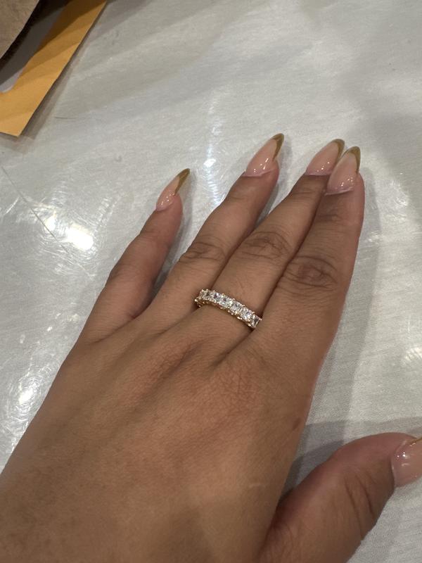 I didn’t expect the ring to be so sparkling ✨ and beautiful. I always wanted an eternity band and couldn’t decide which one, but this ring is delicate and the CZ pieces are a good size and makes the whole setting perfect. Recommend 100%